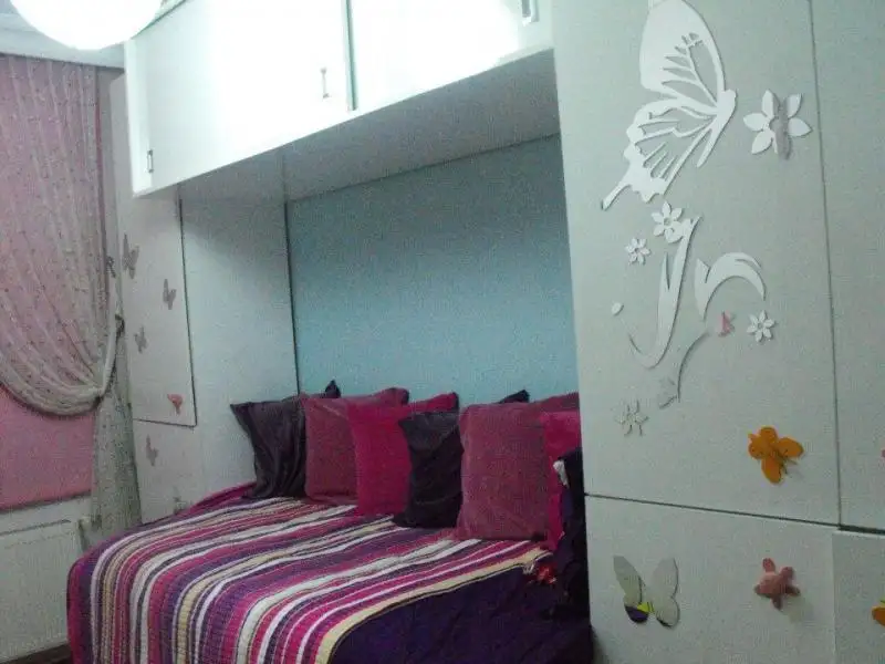 bence mobilyalar beyaz ya da ahşabın çok açık tonlarından seçilmeli.duvarlar da aynı şekilde beyaz olmalı.nedeni ise ; çocukların kullandıkları şahsi eşyalar,seçtikleri süslemeler,duvarlarına (özellikle ergenlikte)asmak istedikleri posterler v.s zaten o kadar renkli oluyor ki, odadaki mobilyalar da renkli olunca çok karmaşık bir görüntü oluşuyor.ayrıca ileride siz ya da çocuklarınız sıkılıp değişiklik yapmayı düşünürseniz bu değişikliği çok daha kolay gerçekleştirebilirsiniz.örneğin ablam oğluna çok beğenerek aldığı gri-kırmızı tonlarındaki mobilyaya uygun parçalarla odayı döşemişti.ancak şimdi odada hiç bir değişiklik yapamadığını ve pişmanlığını dile getiriyor.çok rastlanan olmaması ve çok huzur verdiğini düşündüğündüğüm için kızınız için tek bir duvara minik çiçekleri olan bir duvar kağıdı ,sarı ve çimen yeşili objeler; oğlunuz için de ,tek bir duvar için kesekağıdı rengi boya, mint yeşili ve kahverengi objeler aklıma gelenler oldu.kolay gelsin