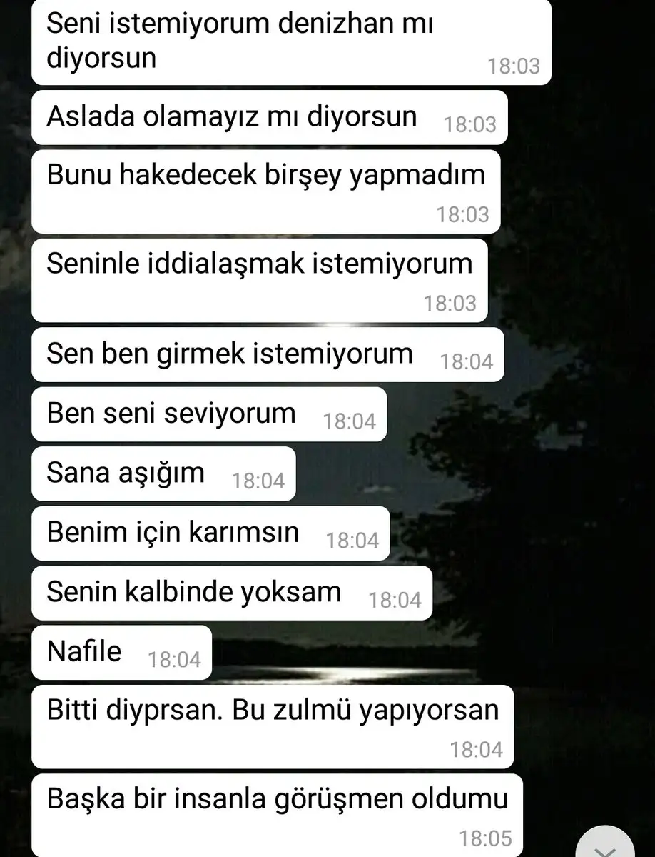 dunden geriye kalan icime okuz oturtan yazdiklari mesela. hala baska biri gorustunmu vs diye kafasinda kuruyor. hayir bunu hissettirecek birsey de yapmadim. 2 cocukla ben tuvalete gidemiyorum evli cocuklu iken adam bulup bulusacak miyim. hem insan karisini bir nebze tanimaz mi nasil kondurur nasil iftira eder aklim almiyor.