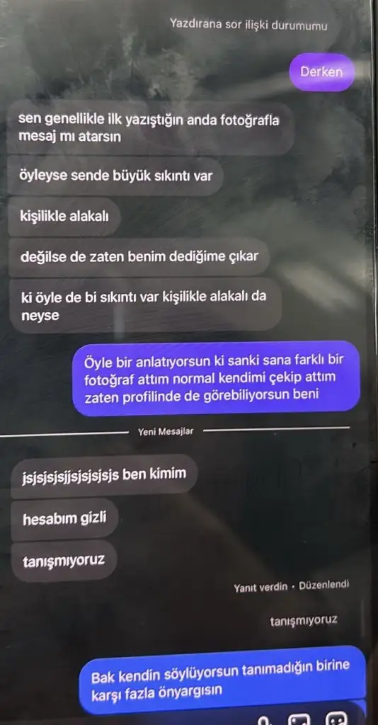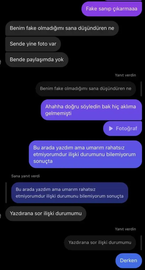 Arkadaşımın arkadaşından istek attırıdk çocuk geri takip yapıp kızın fotoğrafını beğendi güya bana da ilişkiden uzak olmak istiyorum yazdı