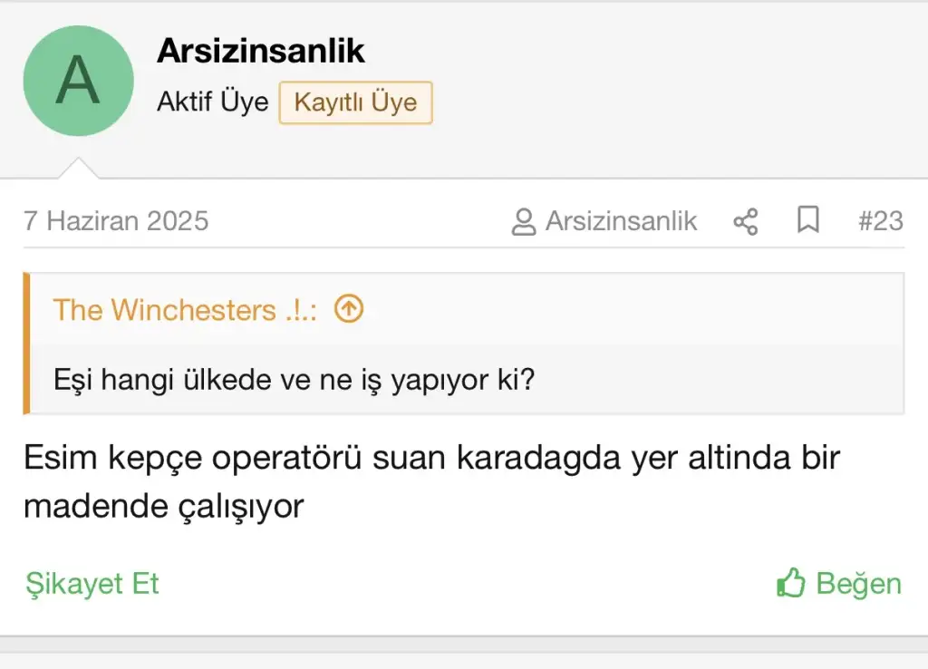 Heh heh aynen ta kendisiYa küçük bebeği olan eşi montenegro’dan iş teklifi almış bir üyeydi. Sözde maaşı Avrupa’daki mühendis maaşına yakındı önce adam gidecekti sonra bebeğiyle Hürrem gidecekti galiba. Ay yanlış hatırlıyor olabilirim ama sanki onun da dayalı döşeli 2+1 evi vardı