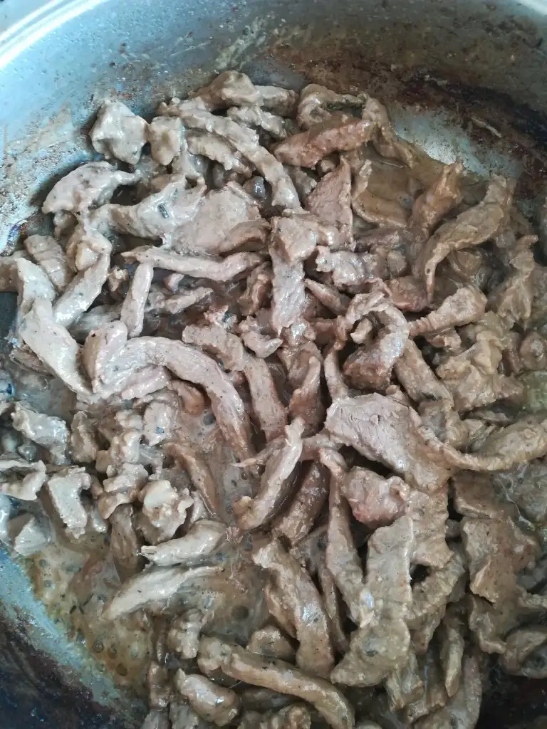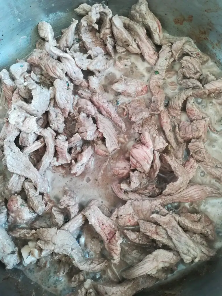 Daha önce yüksek ateşte ısıttığımız tencereye marine olan etleri ısınan tencereye alıp yüksek ateşte karıştırarak suyunu salıp çekene kadar pişiriyoruz.