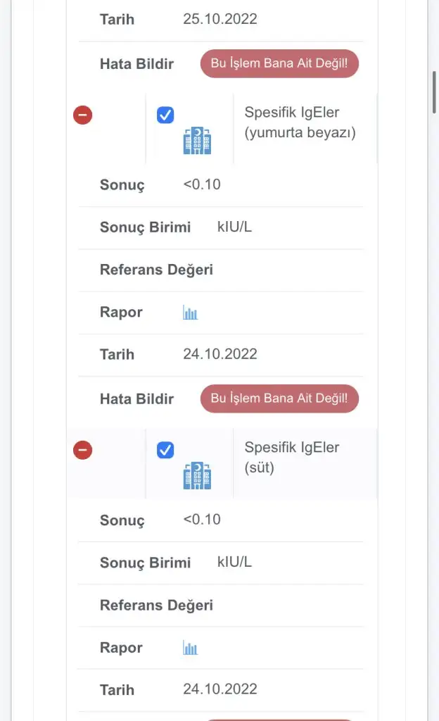Alerji doktorumuz önce cilt testi yaptı. Cilt testinde aklınıza gelebilecek her şeye alerjisi çıktı