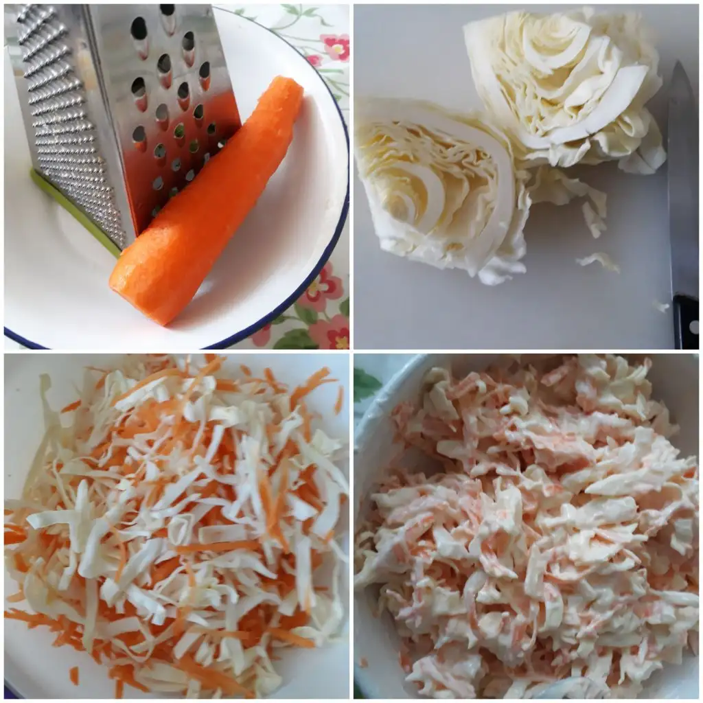 Havucu rendeliyoruz. Lahanayı ince ince doğruyoruz .Bir kapta birleştiriyoruz.