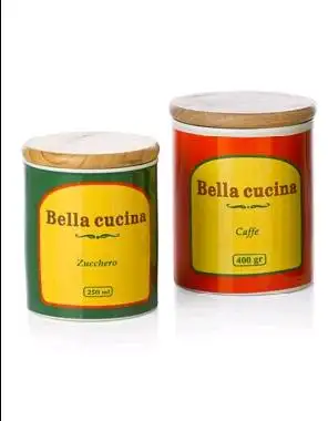 Duvar posteri, kahve fincanları, ekmek bıçağı, tepsi, kavanozlar, döküm mini tencere, şablon