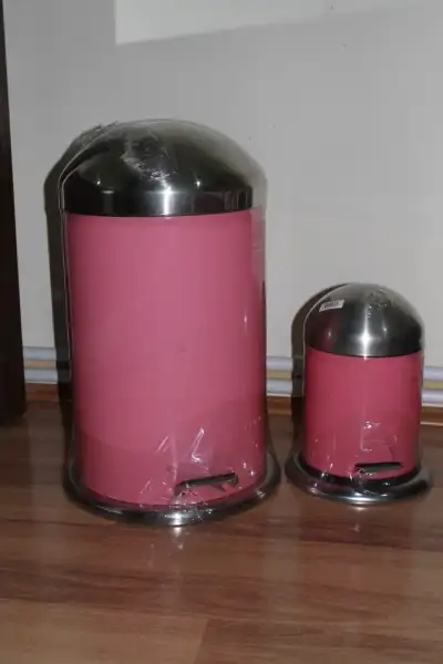 Banyo ve mutfak çöp kutularımız ve banyo paspasım, banyo takımım