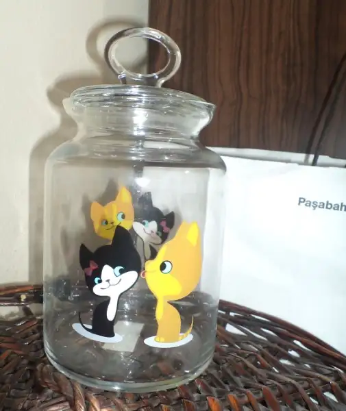 Kedili Saklama Kavanozu ve Kedili Su Bardağı (6'lı)