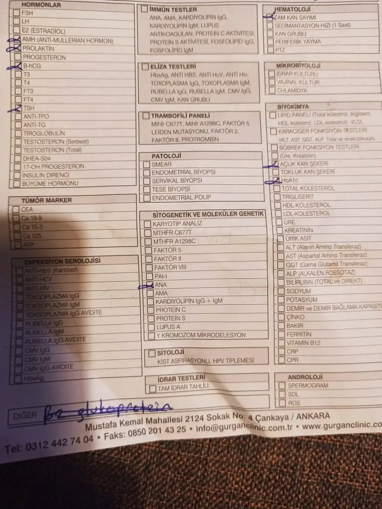 Tabii fotografını yükleyim mevcut testlerin var ama eksik dedi eksikleri istedim birde tekrarlanmasini istediklerim var dedi birazdan yukluyorum bagisiklik sistemi icin eksiklikler varmis
