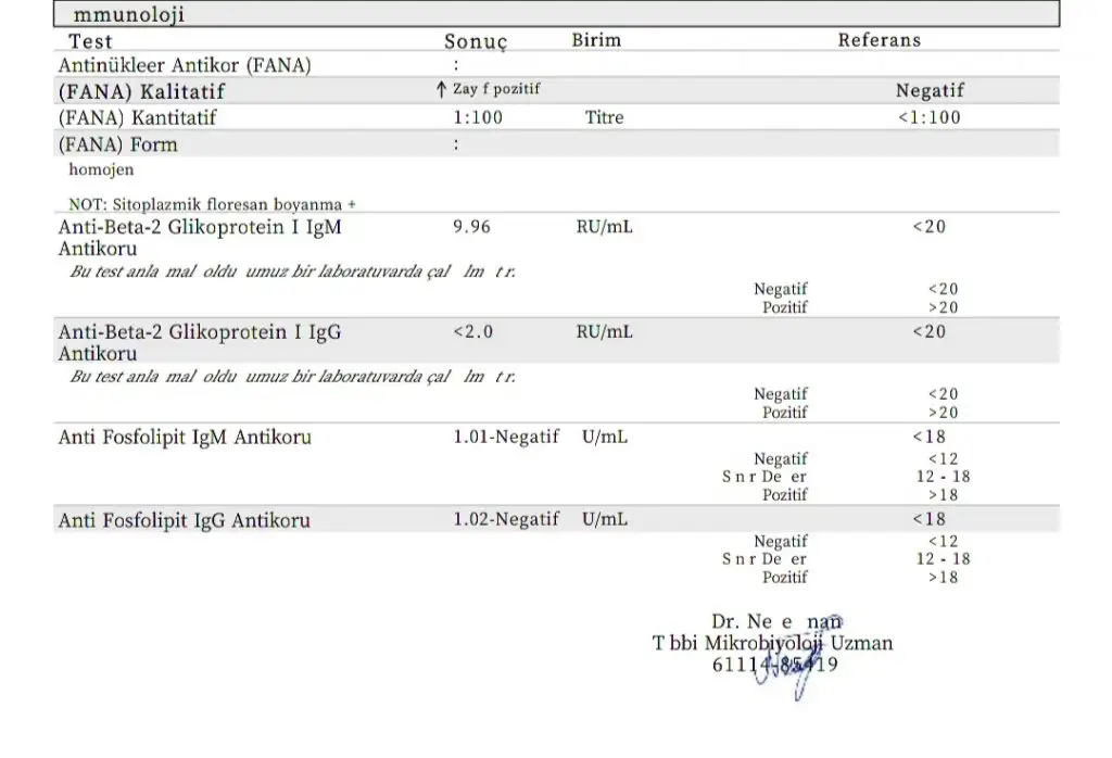 Canım sonuclarını doktora gösterdin mi?tahlillerinle bakılınca seninde otoimmun sistemle ilgili problem var.Tahlil sonuçlarından anladığım kadarıyla sende gizli trioid var.Bak Allah bir kapı daha aralamış .Gelişmeleri bildir olur mu çok merak ediyorum.
