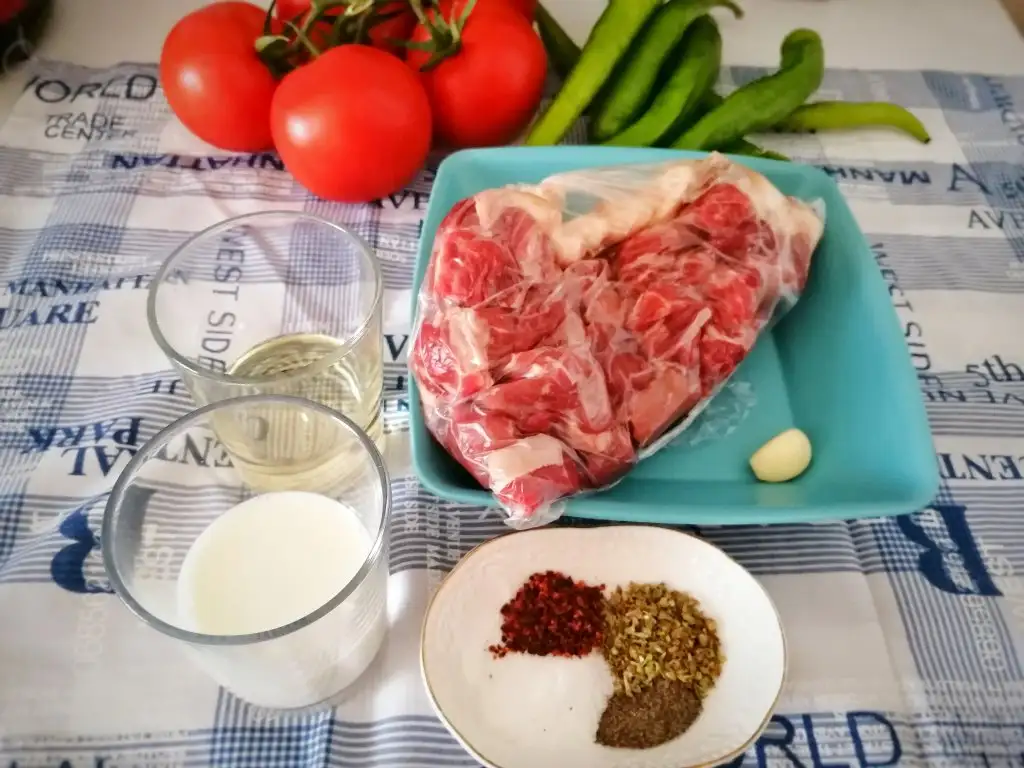 Eti ve kuyruk yağını bir kaba alalım.
