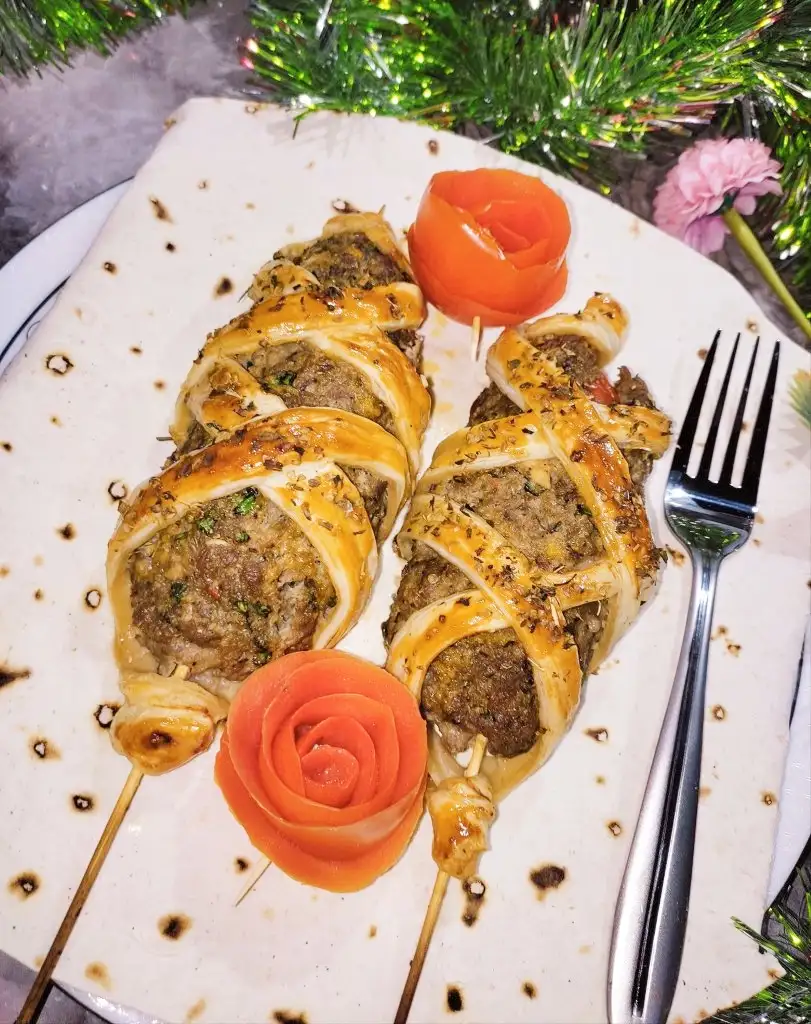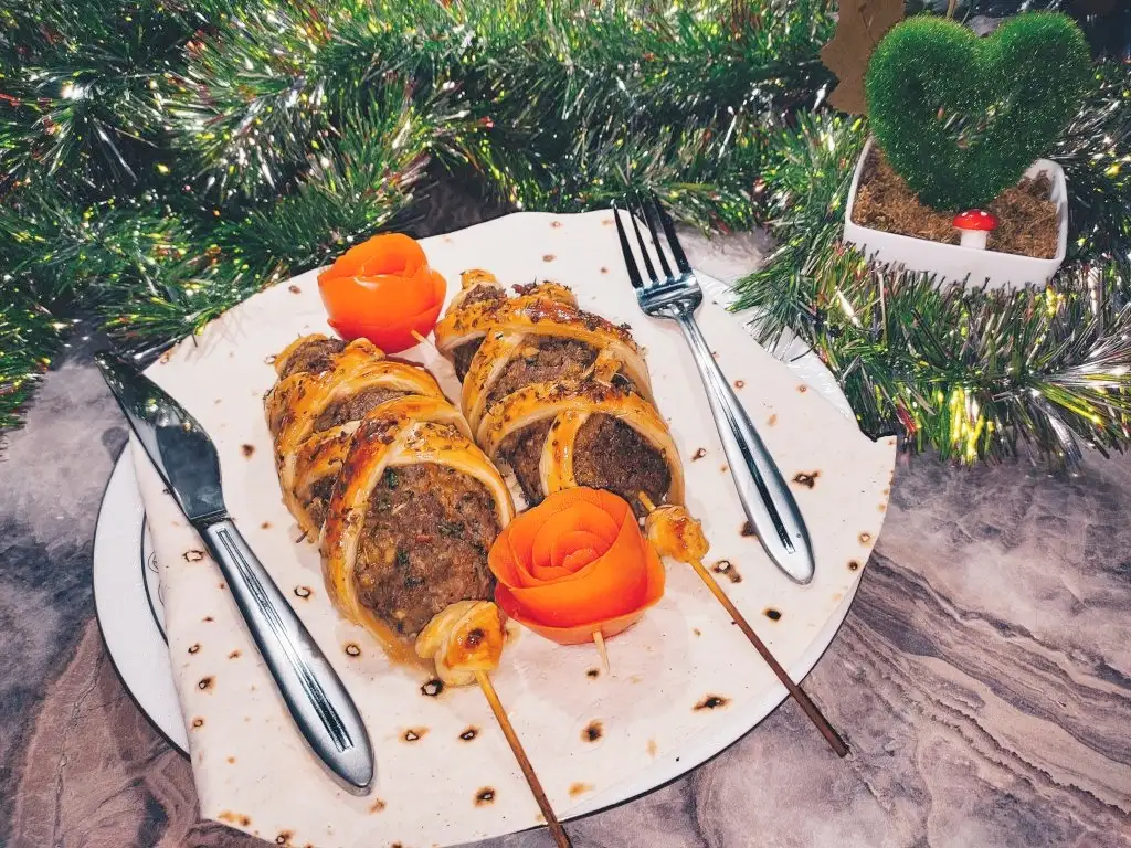İnce şeritler halinde kestiğimiz milföyleri çöp şişin başlangıç noktasindan sarmaya başlayalım.(her bir köfteye iki adet şerit milföy hamuru kullandım.Eki Görüntüle 3179060 Eki Görüntüle 3179061 Eki Görüntüle 3179062 Eki Görüntüle 3179063 Ardindan üzerine yumurta sarısı sürüp kekik serpiştirelim.