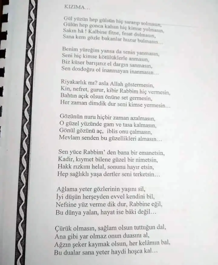 Babam şiir yazar demiştim ya, vaktinde (İki kız kardeşiz) bize duasını şiir olarak yazmış; Maşallah diyerekten sizin kızlarınıza da duam olsun: