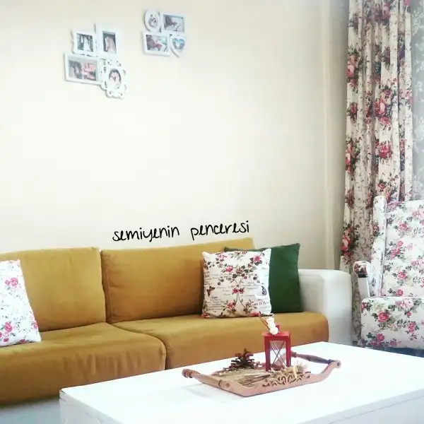Sıra perdelere geldiğinde yine büyük hüsrana uğradım bana simli pullu tüller çıkardılar fon perdesi anlayışları kadife bordo ya da siyah fonlardi. Perdeleri de tesadüfen koctastan buldum.
