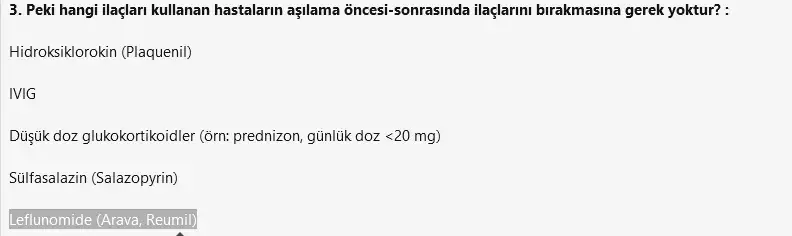 3. Peki hangi ilaçları kullanan hastaların aşılama öncesi-sonrasında ilaçlarını bırakmasına gerek yoktur? :