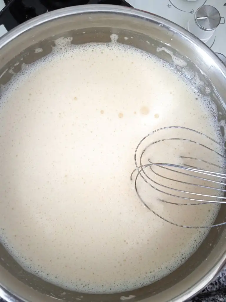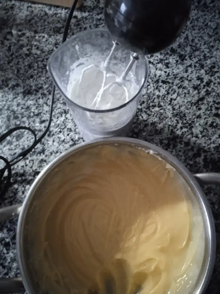 Öncelikle 1 gün önceden kremasını yapıyoruz. Çünkü 1 gece dolapta beklemesi gerekiyor.Yumurta ve şekeri iyice çırpın vanilya ve krem şanti hariç diğer tüm malzemeleri tencereye ekleyin ve kıvam alana kadar karıştırın. Kıvam aldıktan sonra vanilya ekleyip ocaktan alın.Bir kaba aktarın ve üzerine değecek şekilde streç filmle kapatın.