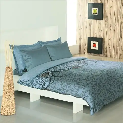 Turkuaz-siyah çok güzel kombin edilmiş, yorganın kaz tüyü mü? Markaları nedir?