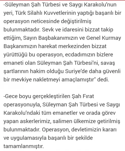 ECDADIMIZIN ARKASINDAN YÜRÜMEYE HAZIR MIYIZ?: Oyun aynı, hedef aynı. Sadece senaryo farklı, figüranlar farklı. PKK, YPG, PYD bir piyondur. DEAŞ, FETÖ piyondur. Hepsi de gözünü vatanımıza dikmiş olan güçlerin kullanmış oldukları araçtır. Tarih boyunca Anadolu hep 7 düvele bedel olmuş bir güçtür. Kefenleri giymeye hazır mıyız? Ecdadımızın arkasından yürümeye hazır mıyız? Milletim meydanlara çıktı. İşgalcilerin, hainlerin karşısına dikildi. Bir söz var; Türkleri ne yerde süründüreceksin, ne de doğrulmalarına izin vereceksin. Sürünecek olurlarsa gururlarına dokunur, küllerinden yeniden doğarlar. Ayağa kalkarlarsa önlerinde duramazsın. Bu şahlanışın önüne geçemeyeceksiniz.