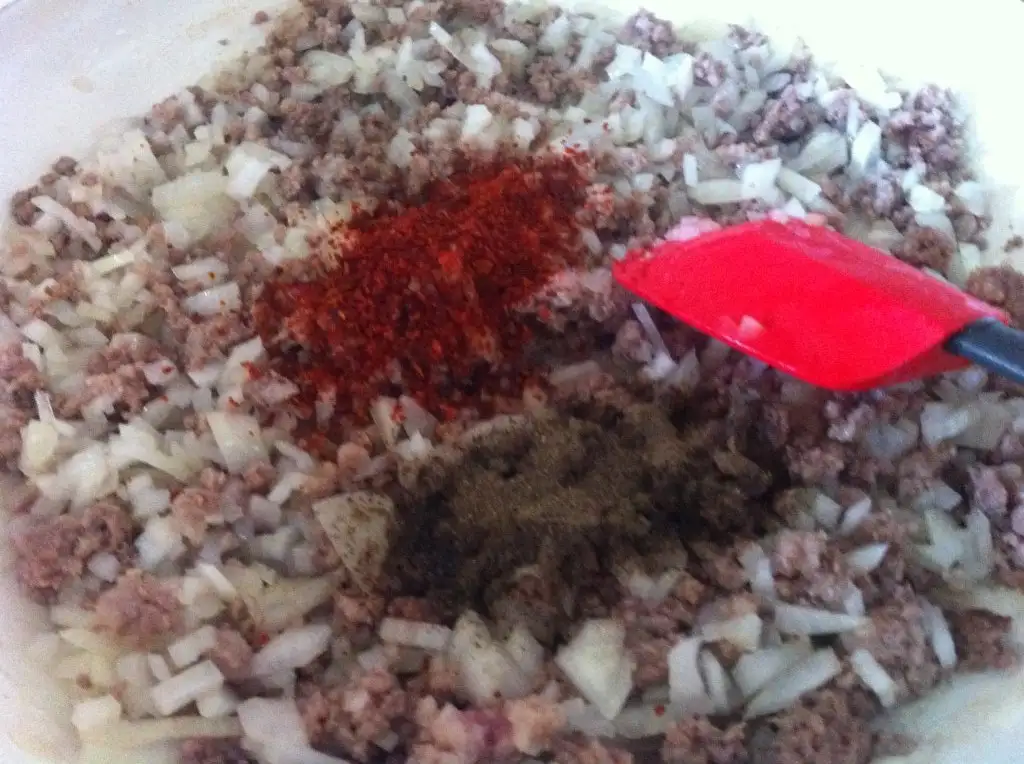 kıyma ve soğanları kavurup harcımızı kavuruyoruz baharatlarıda ekleyip..