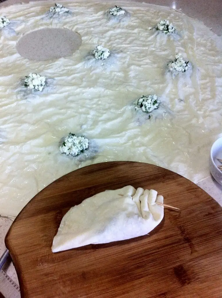 2 .yufkamızıda serip aynı işlemi yapıyoruz .iç koyacağınız yeri soslamayın...