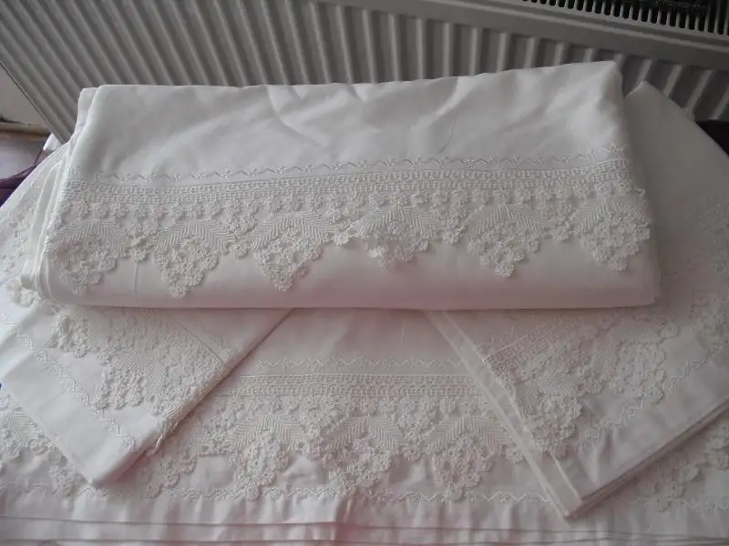 kızlar çeyizimde bulunan nevresim takımı kanser örnekli. çarşaf yastıklar ve nevresiminde dantelleri bulunuyor. bana hediye yapılmıştı. bir kez yatağa serildi ama ben hiç kullanmadan kaldırdım.