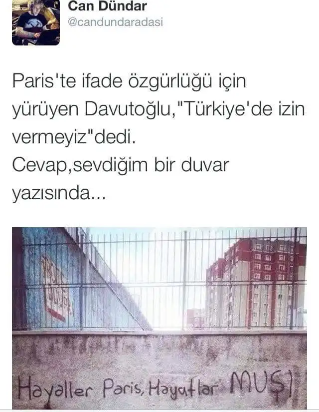 Demek ki Davutoglunun elinin sikilmamasi musluman oldugu icin degilmis, disarda iki yuzlu goruldukleri icinmis, gazeteci dusmani olarak tanindiklari icinmis. Hic sasirmadim. Herkes Turk halki gibi uc maymunu oynamak, gozlerini her pislige kapatmak, duyduklarini normalden saymak zorunda degil. Bizim gazeteciler yok yere Silivride kucucuk bir hucrede kac yil gecirdiler? Ne isi varmis Davutoglunun basin ozgurlugu adi verilen bir yuruyuste? Senin yuzun yoksa elalem de bakmaz zaten o yuze..