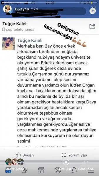 Offf Allahim bu nedir yarabbim . Sen bu insanlara yardim et . Allah boyle adamlarin belasini versin. Gucleri kadina kiza yetiyor erkeklere degil !Bu kızımız da erkek arkadaşı tarafından öldürmeye teşebbüs etmek suretiyle bıçaklanmış