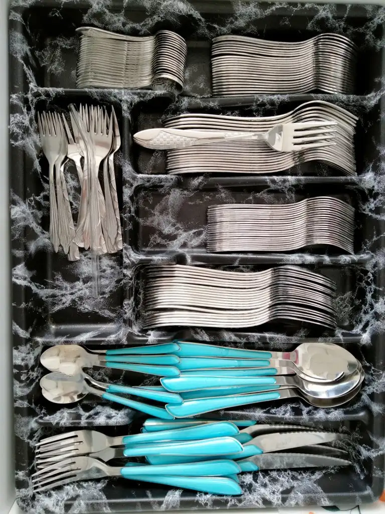 Kaşıklığı dizmiş. Bozamıyorum gelip gidip düzeltiyorBende özeniyorum. Diyorum misafir kaşıklarınada el at