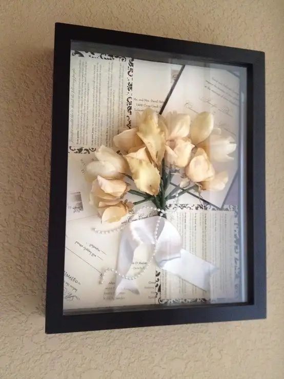 arkadaşım ben 5 yıllık evliyim evlendiğim ilk ay bi cam dekorasyoncuya gittim siyah renkte çerçeve yaptırdım tabi kutu gibi bişey yaptılar duvagımı ve glim çiçeğimi gelin telimi aldım sıcak silikon makinamıda aldım gittim kutunun içine kendi istediğim gibi yerlestirip dantellerini çiçeğini ayarladım ve silikonla belli yerleri yapıstırdım ve üst çerçevesi camı takıldı camci bile fiyat kırdı sırf bir hafta vitrininde sergilesin diye.şuan kirada olduğum için vitrinimin üzerine yerleitirdim kendi evimde yatak başığımın hemen üzerine monte edilecek ve yanlarına iki aplik ışıkla odamı güzelleştrecek.akşama resmini eklerim fikir olur