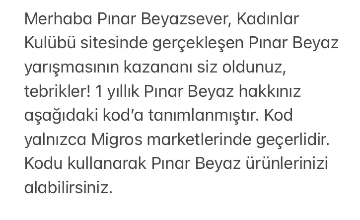 Hey girl, çok hızlı bi şey sorup gidicem. bizim Mart ayında kazandığımız Pınar beyaz hediyemiz 1 senelik mi geçerliydi? Marttan marta diye aklımda kalmış ama eşim Sene sonuna kadar olmasın dedi, içime bir kurt düşürdü.