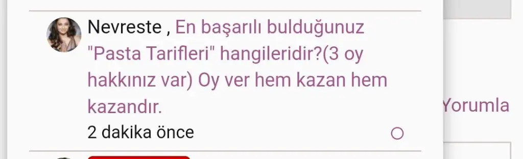 Varyemez Subhanallahi ve bi-hamdihi, subhanallahi'l-azim Pro Üye 6 Ağustos 2010 40.976 73.643 1.123 25 Eylül 2022 Konu Sahibi Konu Sahibi Nevreste #4.293 Oyumu kullandım kadınlar kulübü konseptine sahip pasta beni benden aldı tebrik ederim şimdiden bence 1. Olur Ellerine sağlık...