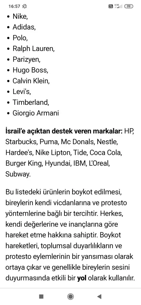 Not: şimdi Google dan baktım da boykot ediliyormuşfairy de boykot edilenler arasındaymış. Açık açık destek veriyorlar mı bilmiyorum listede varlar.