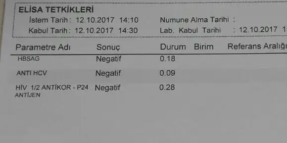 Canım bu test işte aids yada taşıyıcı hastalık var mı diye istedi bende de istedi ben henüz vermedim reglim gelince gideceğim bencede en mantıklısı hastane iyi yapmışsın bu testten sizden de istenmiştir
