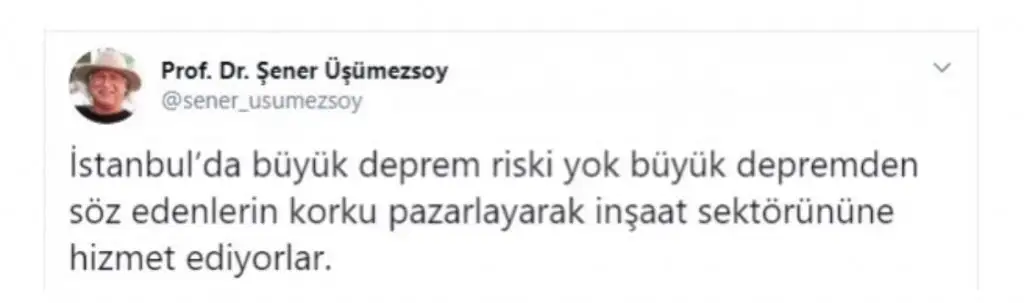 Bu benim fikrim ya da düşüncem değil dün çıkan haberi paylaştım, benim bu haberde asıl dikkatimi çeken bu şiddette bir deprem olmayacak demesi inşaat sektörü değil. Ki olur ya da olmaz orasını Allah bilir. Birileri olacak diyor birileri olmayacak ikiside ihtimal. Önlem almamız gerekir diyede belirttim zaten.