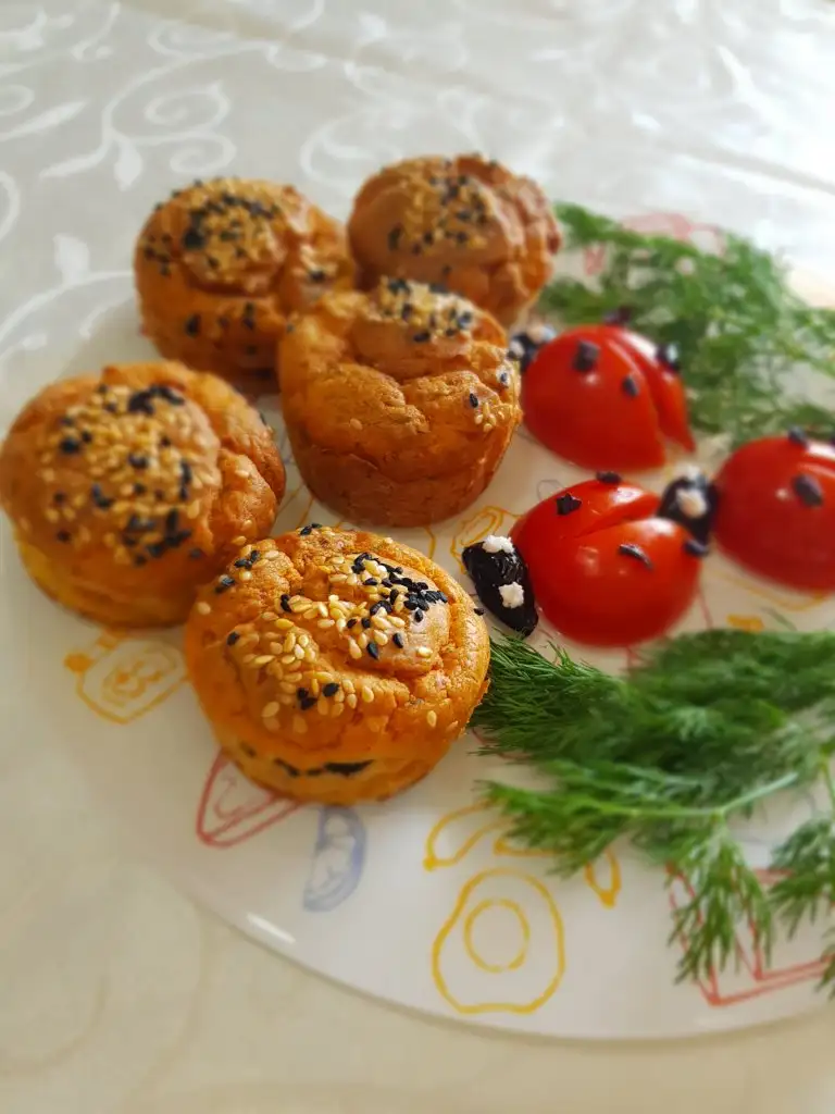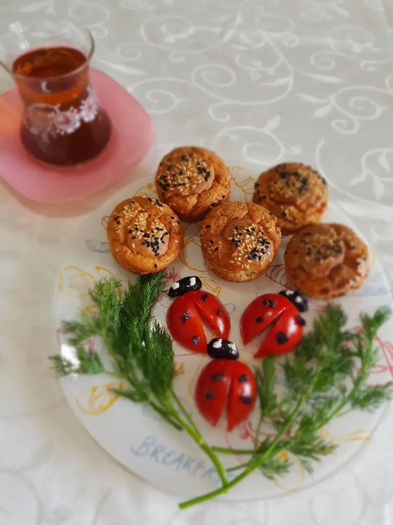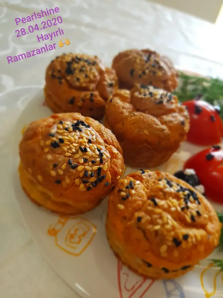 ( Benim Muffin tepsim olmadığı için normal tepsiye yan yana dizdim, dizerken birbirlerine değmemesine dikkat ederseniz bu şekilde de gayet güzel pişiyor.