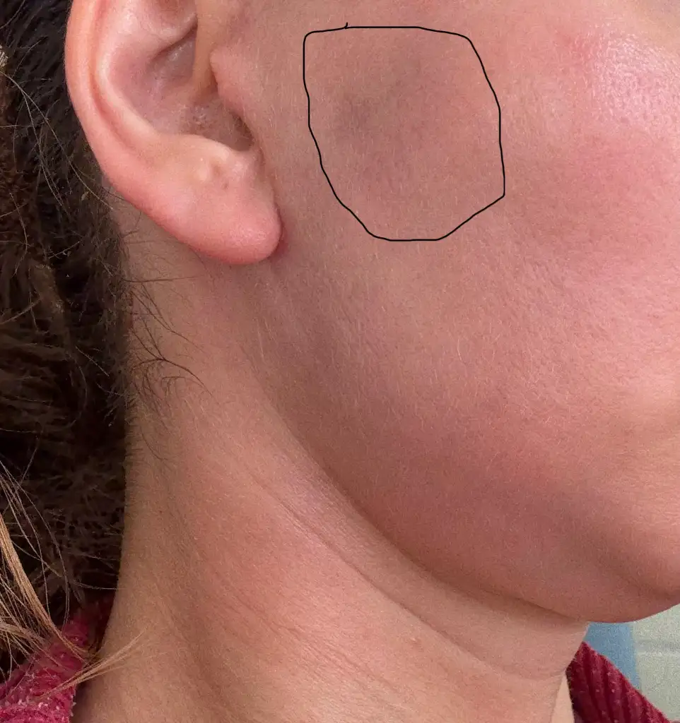 Merhaba, yaklaşık 2.5 ay önce Dr. Muhsin Yilmaz'a derin plan facelift ameliyatı oldum. Şu an çene altımda belirgin bir şişlik var, çene hattım kayboldu ve deri katlanması nedeniyle o bölgede kırışıklık oluştu. Ayrıca kulak önü/yanak bölgesinde ( yuvarlak ile cizili yer ) hafif morluk ve çöküklük de mevcut.