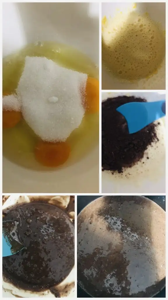 Pastanın keki için yumurta ve şekeri köpürünceye kadar güzelce çırpalım. Üstüne un, kabartma tozu, vanilya ekleyip çırpmaya devam edelim. Son olarak kakaoyu da ekleyip karıştıralım. Kek hamurumuz hazır.