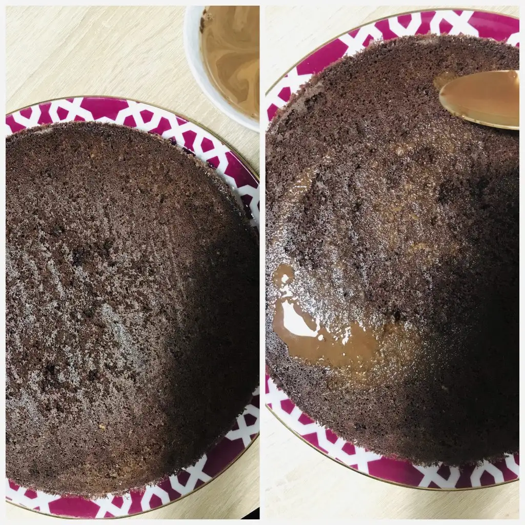 Kahveli sosu için süt, kakao ve instant kahveyi ocakta kaynayıncaya kadar karıştıralım. Kaynamaya başladıktan sonra ocaktan alabilirsiniz. Hazırladığımız kahveli şurubu soğuması için uygun bir kaba alalım.Pişen kekimizi çember çıkaralım ve servis tabağına alalım. Çeberimizi tekrar kekin etrafına yerleştirip soğuyan kahveli sosla sıcak kekimizi ıslatalım.