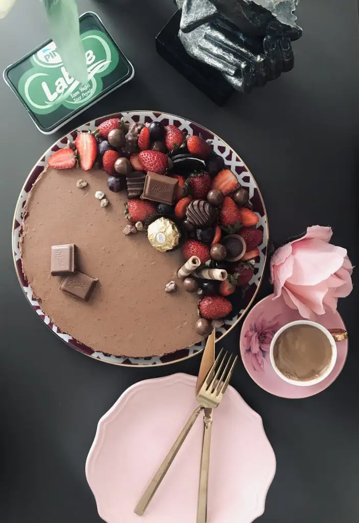 Pastamızı kalıptan çıkaralım. Üzerini dilediğimiz gibi süsleyerek servis edelim. Afiyet olsun.