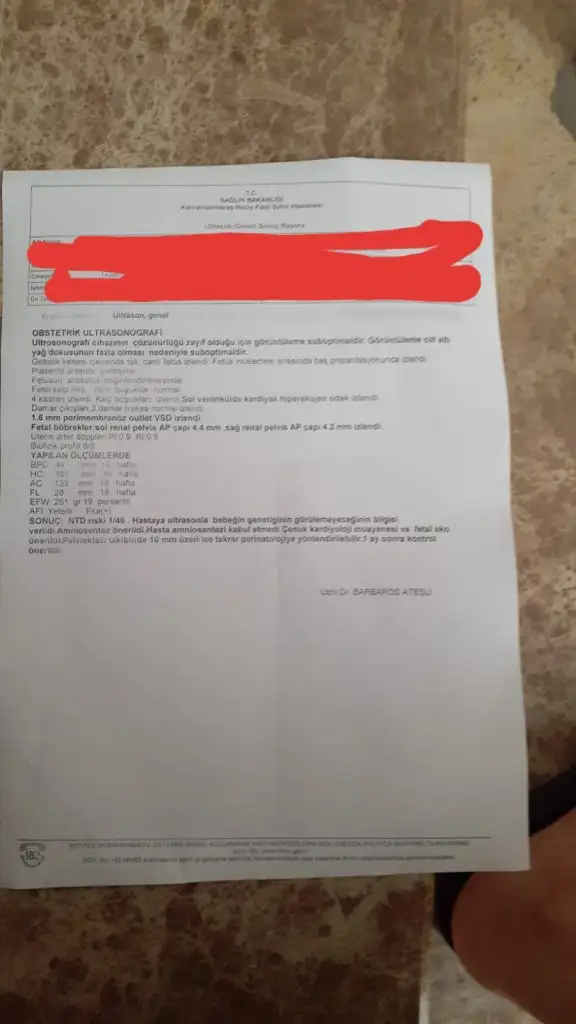 Keşke içinizi ferahlatabilsem çok iyi anlıyorum sizi ama kendinizi yıpratmayin bu kadar. Benim komşumun kardeşi hamileydi yaptırdığı bütün testlerde detaylı ultrasonda hepsinde çocuğa kesin down dendi ama çocuk gayet sağlıklı doğdu. Siz sabırla duanızı edin tevekkül Allah'tanarkadaslar benim detayli ultrason görüntüm bu şekilde, doktor kalbinde parlaklık ve bobreklerde azda olsa büyüklük görmüş..ıkili testte sorun çıkmamıştı ama üçlü testte down sendromu ihtimali var diye detayli ultrason cektirdi ve sonuç resimdeki gibi ama bu durumla karşılaşan varmi çocuğum down sendromlumu olacak