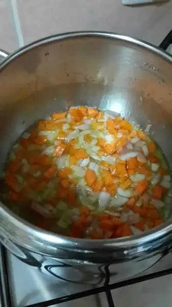 1 adet soğanı yemeklik doğruyoruz (dilerseniz iri doğrayabilirsiniz, sonra blenderdan geçireceğiz). Düdüklümüzü ocağa alarak orta ateşte altını yakıyoruz ve çiçek yağımız ile zeytinyağımızı tencereye koyuyoruz biraz ısıtıyoruz. Daha sonrasında soğanlarımızı içine atarak karıştırıyoruz. Soğanlar çok pembeleşmeden hemen havuçları da ekliyoruz. Havuç piştikten sonra tatlanan bir sebze olduğu için, havucu biraz soteliyoruz ki hem rengini hem de tadını salsın, çorbamıza lezzet versin.