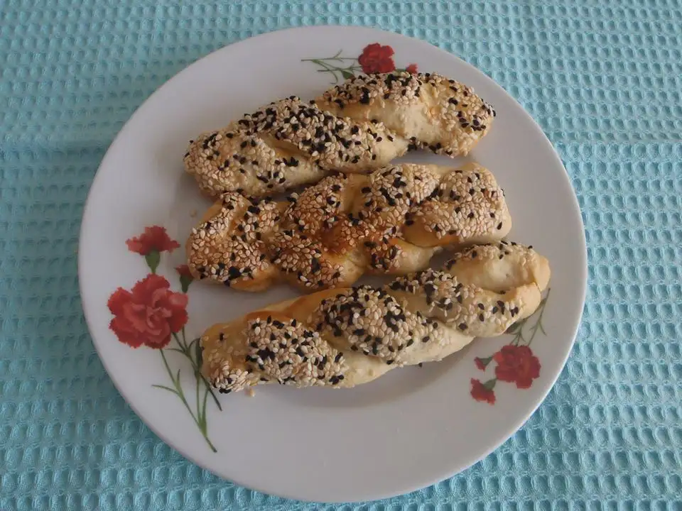 Şekerli ılık sütte mayayı eritip kabarmasını bekleyin.Bir kaba unu koyun ortasını açın, tuzu kenarlarına serpin.Diğer tüm malzemeleri ve mayalı karışımı unun ortasına ekleyip iyice yoğurun.30-4o dk mayalanmasını bekleyin.Mayalanan hamuru tekrar yoğurup bezelere ayırın.Bezeleri uzatıp saç örgüsü gibi yapın.Üzerine yumurtası sarısı sürüp, susam çörek otu haşhaş serpin.180 derecede kızarana dek pişirin.