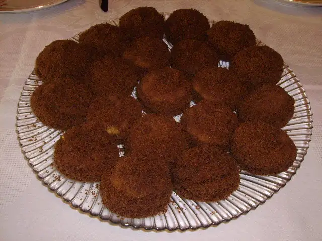 muhallebiden 1 yemek kaşığı alıp kekciklerin ortasına koyun ve kek kırıntılarıyla kaplayın.