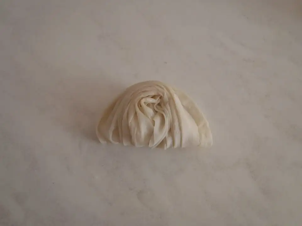 Yufkalar 4 eşit parçaya bölünür. Bir parçası alınarak geniş tarafı size doğru olacak şekilde masaya serilir. Üzerine erittiğiniz tereyağı ve su karışımı sürülür. Yufkanın sivri ucu ve geniş kenarının ortası tutularak yufka büzülür kelebek şekli verilir. Kanat kısımlarını çevirerek (lale şeklinde) yukarıda birleştirilir. Birleştirilen yere peynirli harç konulur ve kenarlarını kapatılarak sigara böreği sarar gibi sarılır. Tüm yufkalara aynı işlem tekrarlanır. Börekler yağlanmış tepsiye dizilerek Üzerine yumurta sarısı sürerek 180 derecede kızarana kadar pişirilir. Afiyet olsun.