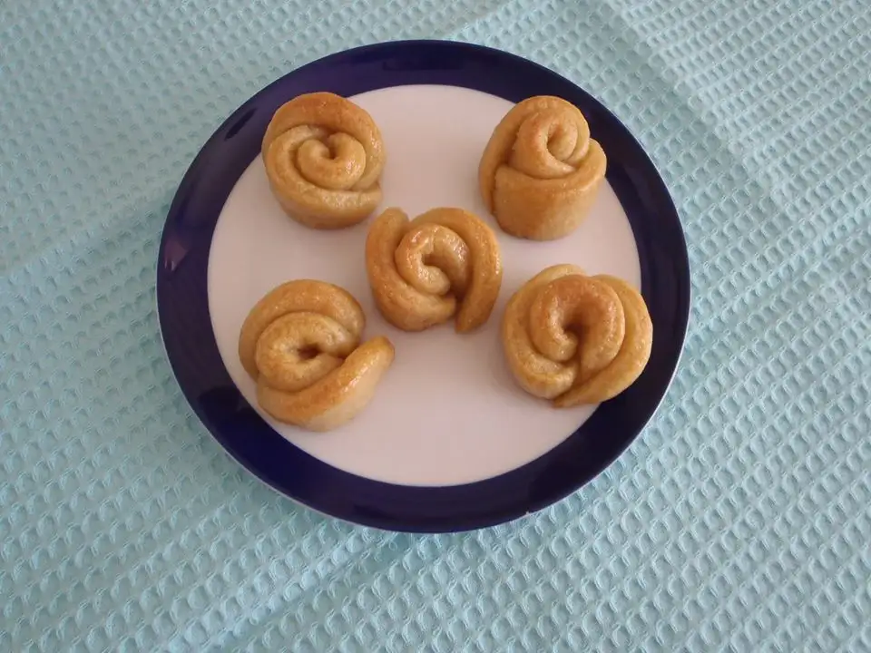 Yumuşak kıvamda bir hamur yapılır. Hamuru 1 cm kalınlığında merdane ile açılıp, çay bardağı ile yuvarlaklar kesilir. Her biri diğerinin yarısına gelecek şekilde 3 yuvarlağı üst üste koyup sarıyoruz ve bıçakla ortadan kesiyoruz. 180 derecede pişiriyoruz. Güllerimiz sıcakken şerbetini döküp üzerini tepsi ile kapatıyoruz. Afiyet olsun…