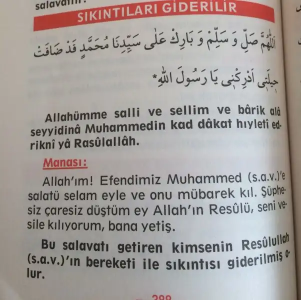 ANLAMI:Allah'ım Efendim Muhammed'e ve O'nun ehline salat eyle. Çok sıkıntım var, bana yardım et ya Rasulallah.