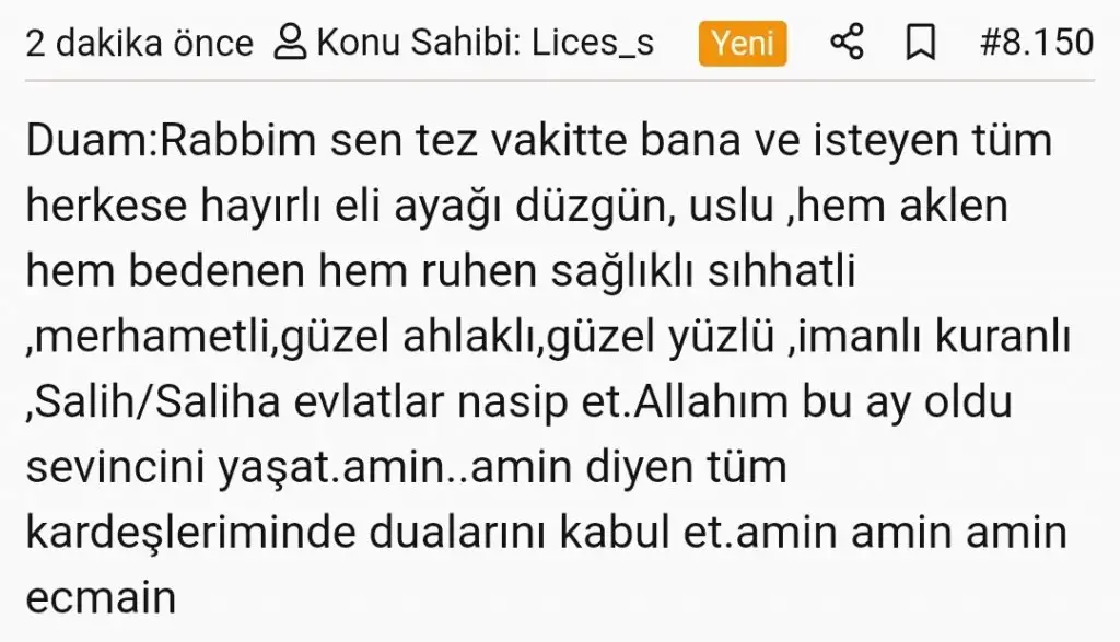 Dua sırasıiki prensesin annesi (Yadigar) arkadasımızda Duası tez zamanda hayırlı saglıklı imanlı evlat sahibi olmak