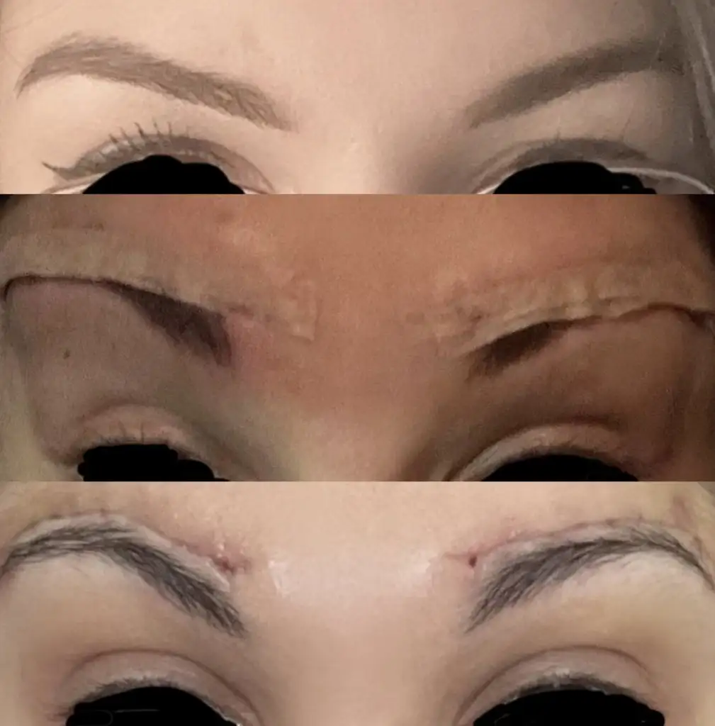 Çok teşekkürler. İz için ne kullanayım diye sorduğumda dermatix jel önerdi. Hemen kullanabilirsin dedi, halen birleşmemiş olan kesi yerleri hariç olmak üzere. Eğer işe yararsa size de yazarım yaramazsa da başka yöntemler araştıracağım. Kaşım orta kalınlıkta olduğu için üst kısma microblading düşünmüştüm fakat yaptırıp memnun kalan pek yok gördüğüm kadarıyla. Kaşın dibinden de yapmamış ameliyatı, dikişli kısımlar bir iki mm yukarıda duruyor. O yüzden ize çare bulmam lazım bir şekilde. Şu an benim de kaş göz mesafem iyi ama sol kaşımın ortasında kavis oluşmuş, ameliyattan önce sadece en kenarında hafif kavis vardı. Ameliyat öncesi, ameliyattan çıkınca ve şu anki halini birleştirerek fotoğraf atıyorum.Merhaba. Dalgalanma gibi bir görünüm bende sağ tarafta var. Nedenini gerçekten anlayamadım. Bir de dikiş izi kötü kalıyor. Madecassol ve silikon jel fayda etmedi. Ama gözkapaklarım çok güzel açıldı. Kaşlar güzel. Tek sıkıntım iz olayı. Bazı ışıklarda çok belli ediyor. Microblading yapılsa olmaz çünkü kaş çok kalın görünür. İzi bayağı kafama takıyorum. Bu ameliyatı kaşı çok kalın ve gür olanlar yaptırmalı. O zaman iz kaş kılının içinde kalabilir. Ama memnun muyum ? Evet eskiye göre çok güzel duruyor. İz konusunda çözüm bulursanız bana da yazın. Sizin kaş üstünden miydi ? Gözleri kapatıp resim koyabilirsiniz. Sevgilerimle.
