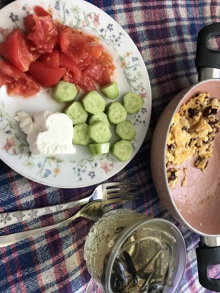 Selam arkadaşlar bu sabah 12’de kahvaltı yaptım anneme geldim kahvaltı klasik bol yeşillikli kahvaltı yaptım ama zorla iki tane pişi yedirdi 🙈🙈