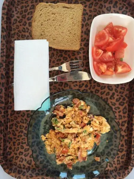 Bu benim en sevdiğim kahvaltı menüsü. Normalde omleti kaşarlı ve bol yağda severim ama yapacak bir şey yok :)