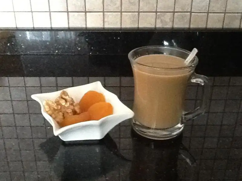 1 dilim peynir , 3 tane zeytin , 1 haşlanmış yumurta , 10 tane fındık , 2 kayısı , yarım dilim tambugday ekmeği