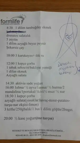 dün yine randevum vardı ve toplamda 13 kg gitti sizlere ekte tekrar yemek listemi ekliyorum ilginizi çekerse bakarsınız.